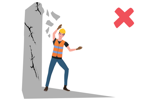 Prace rozbiórkowe należą do najbardziej niebezpiecznych robót na placu budowy, podczas których istnieje ryzyko przygniecenia osób przez upadające elementy. Każde usunięcie części budynku może wpłynąć na statykę budynku, który następnie zachowuje się w sposób nieprzewidywalny. Nieprzestrzeganie procedury technologicznej lub jej nieodpowiednie zaprojektowanie pociąga za sobą duże ryzyko. Należy również zachowywać ostrożność w sytuacji kombinowanego wyburzania ręcznego i mechanicznego. Istotne jest określenie odpowiedniej procedury technologicznej w oparciu o szczegółowy przegląd obiektu. Miejsce rozbiórki powinno być zabezpieczone przed dostępem osób postronnych. Procedura technologiczna powinna być zaplanowana w sposób nienaruszający stabilności innych części obiektu. Konieczne jest odłączenie wszystkich instalacji (woda, elektryczność, gaz), które są częścią wyburzanego budynku. Zamknięte pojemniki i obszary, w których przechowywane były niebezpieczne substancje, muszą być odpowietrzone. Jeśli konstrukcja obiektu jest naruszona, obowiązuje zakaz wejścia i poruszanie się w jego otoczeniu. Rozbiórkę należy zatem przeprowadzać etapami i stale sprawdzać, czy spełnione są wymagania określone w procedurze technologicznej.