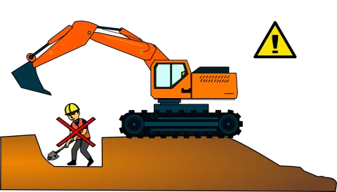 - Intrarea persoanelor în groapa excavată trebuie redusă la minimum. Dacă este posibil, optați pentru executarea lucrărilor fără șanțuri sau utilizarea de utilaje controlate de la distanță.