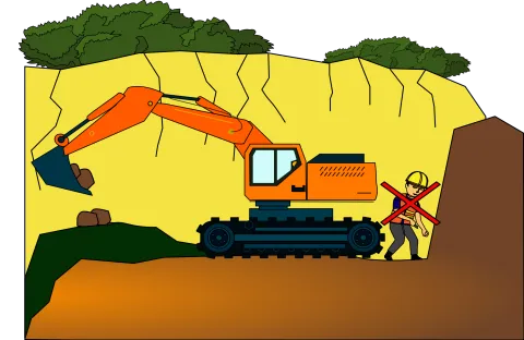 - Locul de realizare al excavării trebuie securizat împotriva pătrunderii persoanelor neautorizate și împotriva căderii persoanelor în locul excavat.