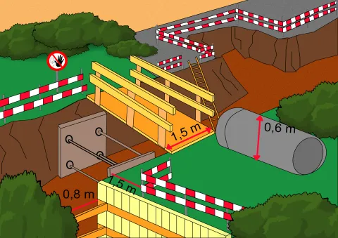 Pereții zonei excavate trebuie să fie fixați - de ex., prin înclinarea lor sau cu ajutorul palplanșelor.