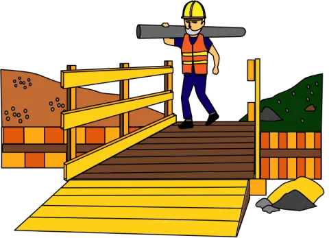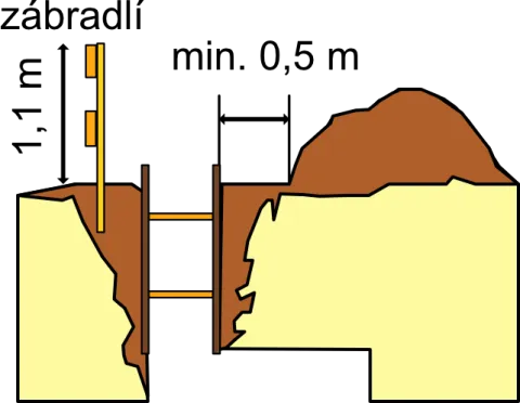 - Peste excavări trebuie instalate treceri și pasarele. Deasupra unei zone excavate mai adânci de 0,5 m pe un șantier împrejmuit trebuie să existe o pasarelă cu o lățime de cel puțin 0,75 m, prevăzută cu