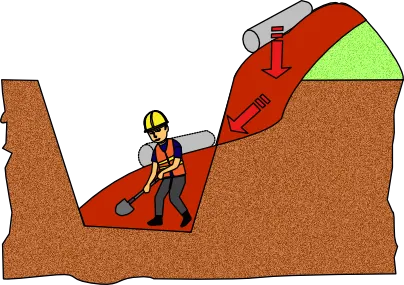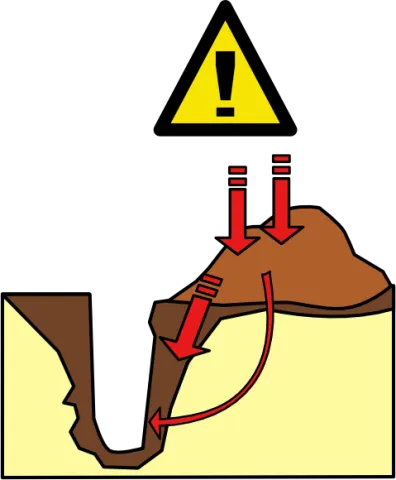 - Atenție la îmbibarea cu apă în pantă! Există pericolul ca peretele zonei excavate să se prăbușească Dacă este posibil, nu efectuați lucrări de excavare atunci când solul este înghețat sau după ploi prelungite.