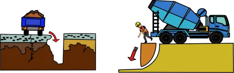Minimizați traficul la marginea șanțului excavat. Nu depozitați materialul aproape de marginea șanțului pentru a evita supraîncărcarea sa. Nu încărcați marginile șanțurilor la mai puțin de 0,5 m de marginea acesteia!