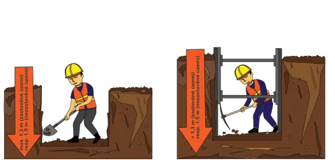 - În cazul lucrărilor de excavare mai adânci de 1,5 m este necesară supravegherea profesională (de ex., a unui geolog sau inginer geotehnic)