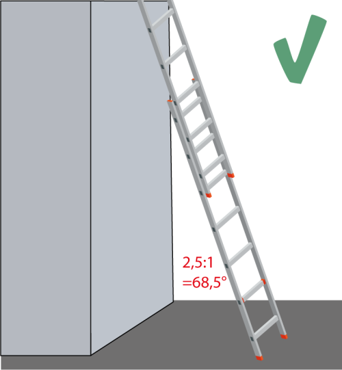 - Înclinarea scării nu trebuie să fie mai mică de 2,5:1, adică aproximativ 68° față de orizontală. Înclinarea scărilor cu trepte simple și duble (atunci când sunt desfăcute) în conformitate cu ČSN EN 131 trebuie să fie de 65°-75°, iar pentru scările cu trepte de 60°-70° de la orizontală.