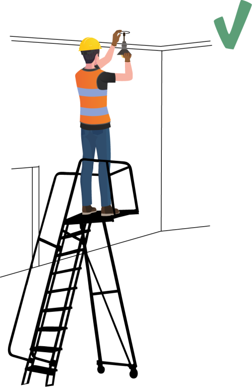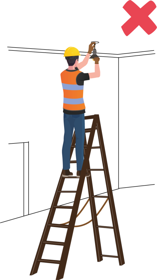 - Atunci când lucrați pe o scară, stați la o distanță sigură de capătul superior al scării (cel puțin 0,8 m pentru scările simple și 0,5 m de capătul scării pentru scările duble).