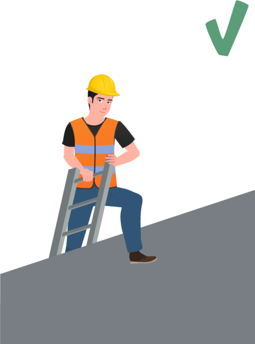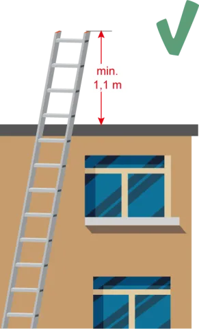 - Scările utilizate pentru urcare trebuie să se extindă la cel puțin 1,1 m deasupra nivelului de urcare; rampa scării poate fi înlocuită cu o parte solidă a structurii ce poate fi apucată în mod fiabil; partea superioară a scării nu trebuie urcată.