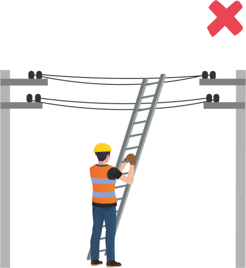 - Atenție la manipularea și transportul scărilor metalice în apropierea elementelor sub tensiune! Păstrați distanța de siguranță! Asigurați liniile electrice neprotejate din zona de lucru înainte de începerea lucrului.